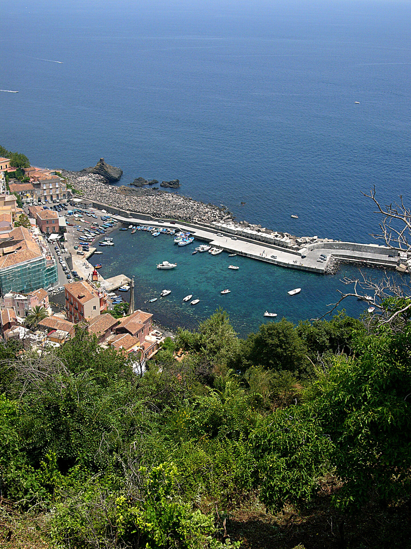 Lasciamo quindi Santa Maria La Scala il villaggio dei pescatori, e procediamo lungo la Strada della Marina, con l’Etna, “a Muntagna”, che svetta imponente sullo sfondo.
