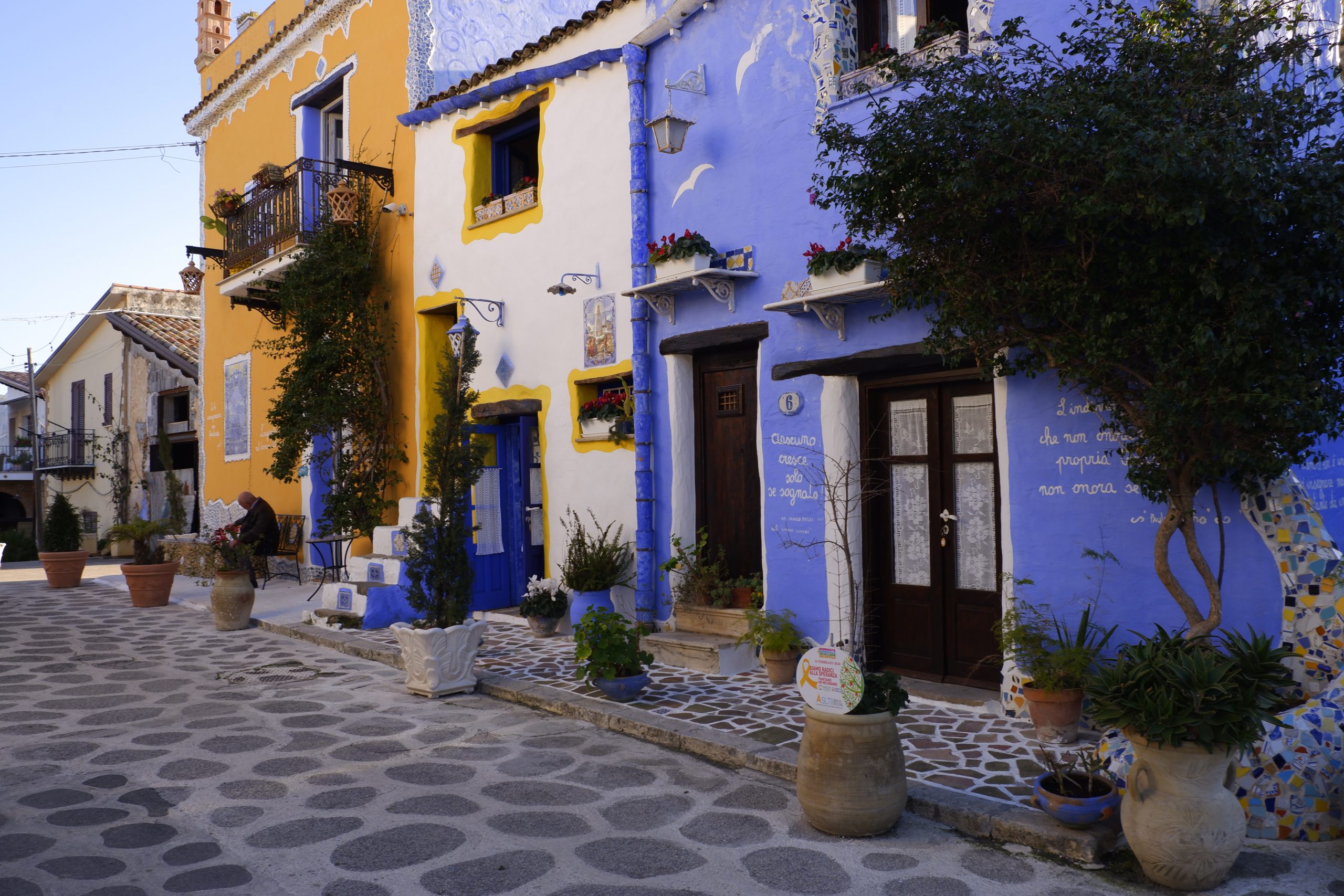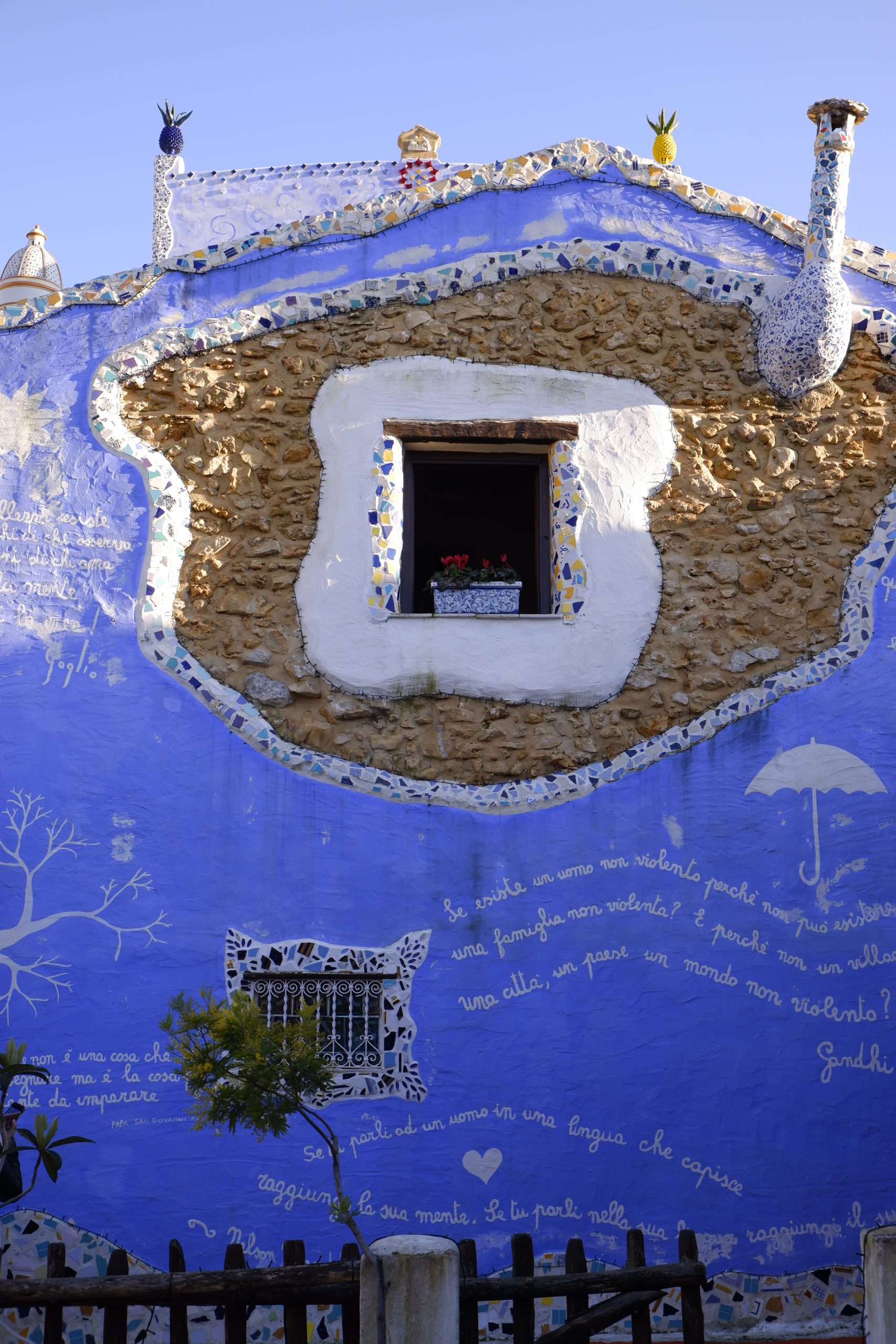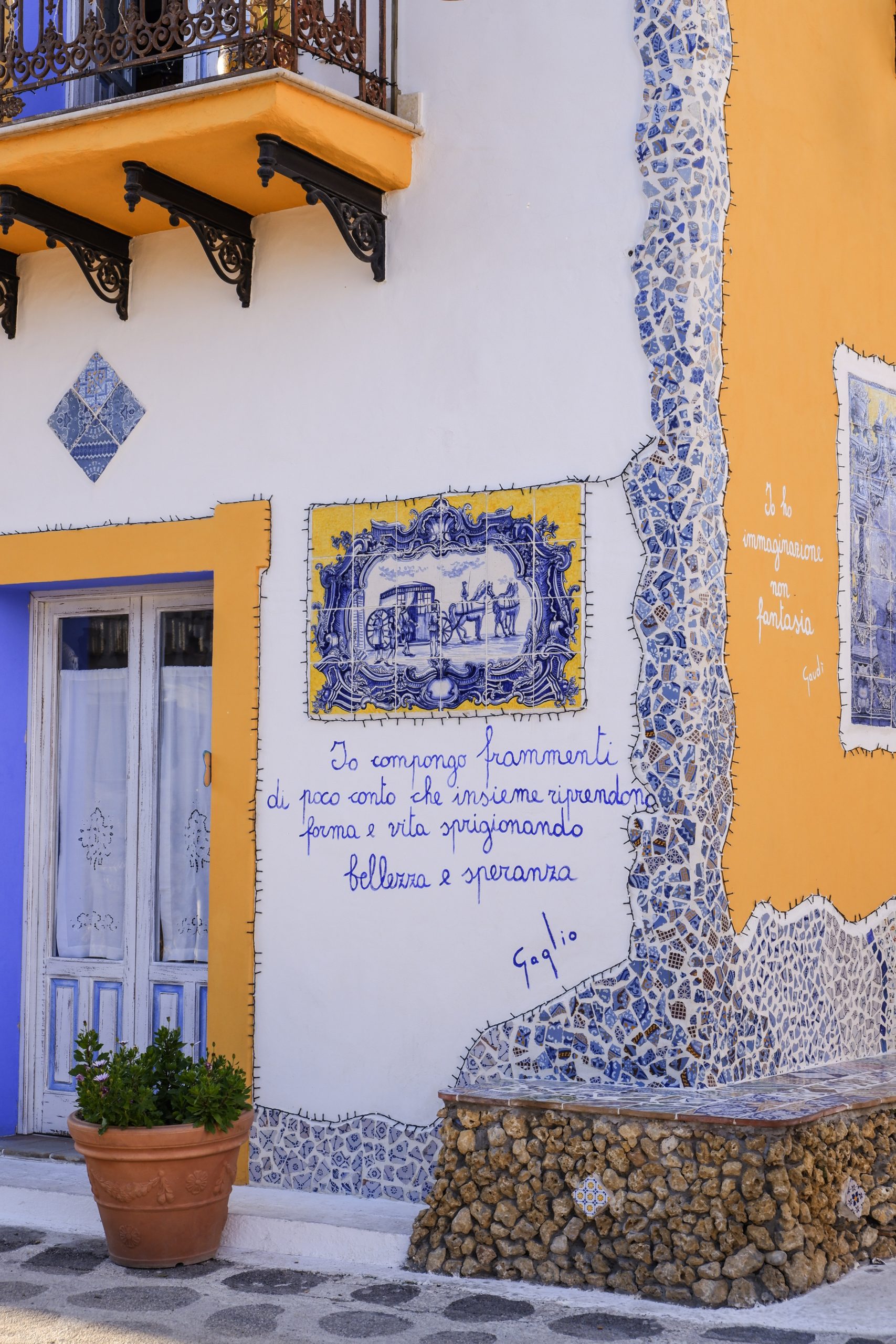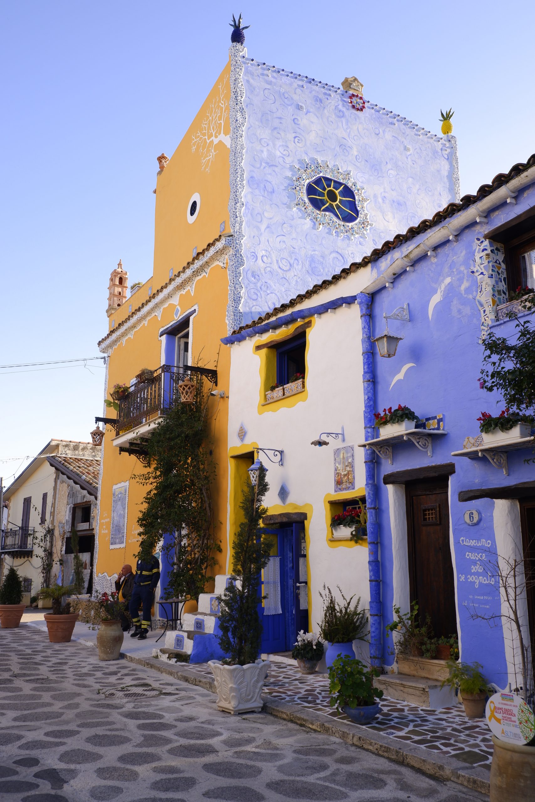 Case bianche con porte azzurre e infissi gialli e finestre colorate, sculture rivestite di mosaici di vetro (in stile Gaudì) e di maioliche. Ogni dettaglio estetico rende l’atmosfera decisamente spagnoleggiante!