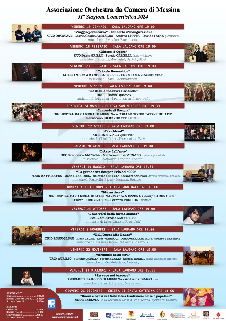 The Messina Chamber Orchestra Association presents the 51st Concert Season for 2024. In April there will be two appointments, both in the Sala Laudamo at 7 p.m.