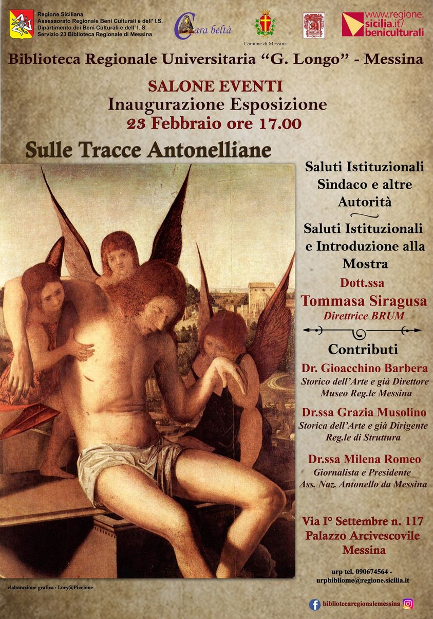 The event intends to commemorate the 70th anniversary of the 1953 exhibition, set up in Messina by Carlo Scarpa, as well as the 1981 exhibition, which had such a resonance in the press and culture of the time. Particularly interesting is the exhibition including rare period prints, incunabula and manuscripts from the La Corte Cailler Fund: an ideal journey through the history of Antonellian culture. The display of the Modern Book is also extremely interesting, with a vast and heterogeneous itinerary that winds its way through monographs and periodicals, which well illustrate the salient stages of Antonello da Messina and the evolution of his art, emphasising the pictorial innovations that the artist was able to introduce.