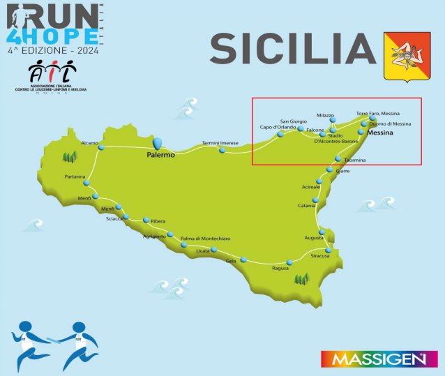 Run4Hope Massigen represents the first great solidarity running Tour of Italy, articulated on regional synchronous relays, with an exclusive charitable purpose. From 13 to 21 April 2024, for the fourth edition, it will be back to support Research against Leukaemia, Lymphoma and Myeloma promoted by AIL. On the “Run with Us” section of the Run4hope website, a preview of the various relay routes is published region by region.