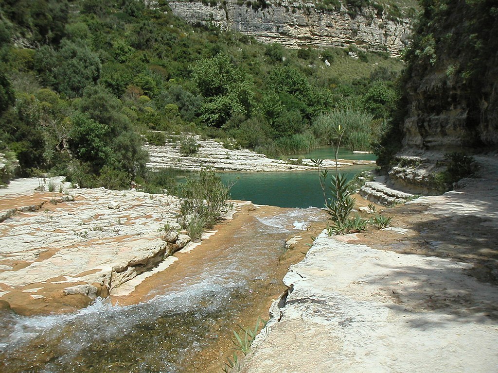 Las “canteras” de estas zonas son espectaculares barrancos productos de la erosión de los cursos de agua que aún discurren por su fondo. Aquí en Cavagrande el río Cassibile (el antiguo griego Kakyparis) sigue fluyendo de forma soberbia, creando a lo largo de su recorrido un sistema de pequeñas cascadas y lagos donde poder refrescarse y relajarse, inmersos en la naturaleza más incontaminada.