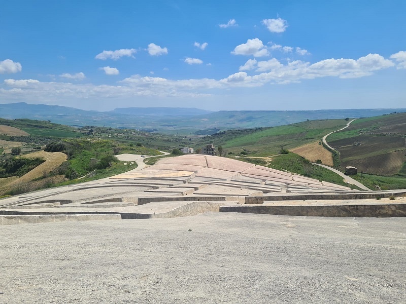 Empezamos nuestro viaje con la ciudad de Gibellina. Está situada en el corazón de la provincia de Trapani y su nombre está relacionado con el terremoto de Belice. La gigantesca obra de arte Cretto de Alberto Burri se refiere precisamente a esta catástrofe natural.