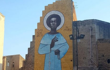 Dejemos la Kalsa y vayamos al Molo Sant’Erasmo. Igor Scalisi Palminteri ha representado al protector de los marineros. San Erasmo lleva un chaleco salvavidas y sostiene dos ramas en la mano mientras mira al mar. El santo observa a los que cruzan el mar, incluso en condiciones adversas.