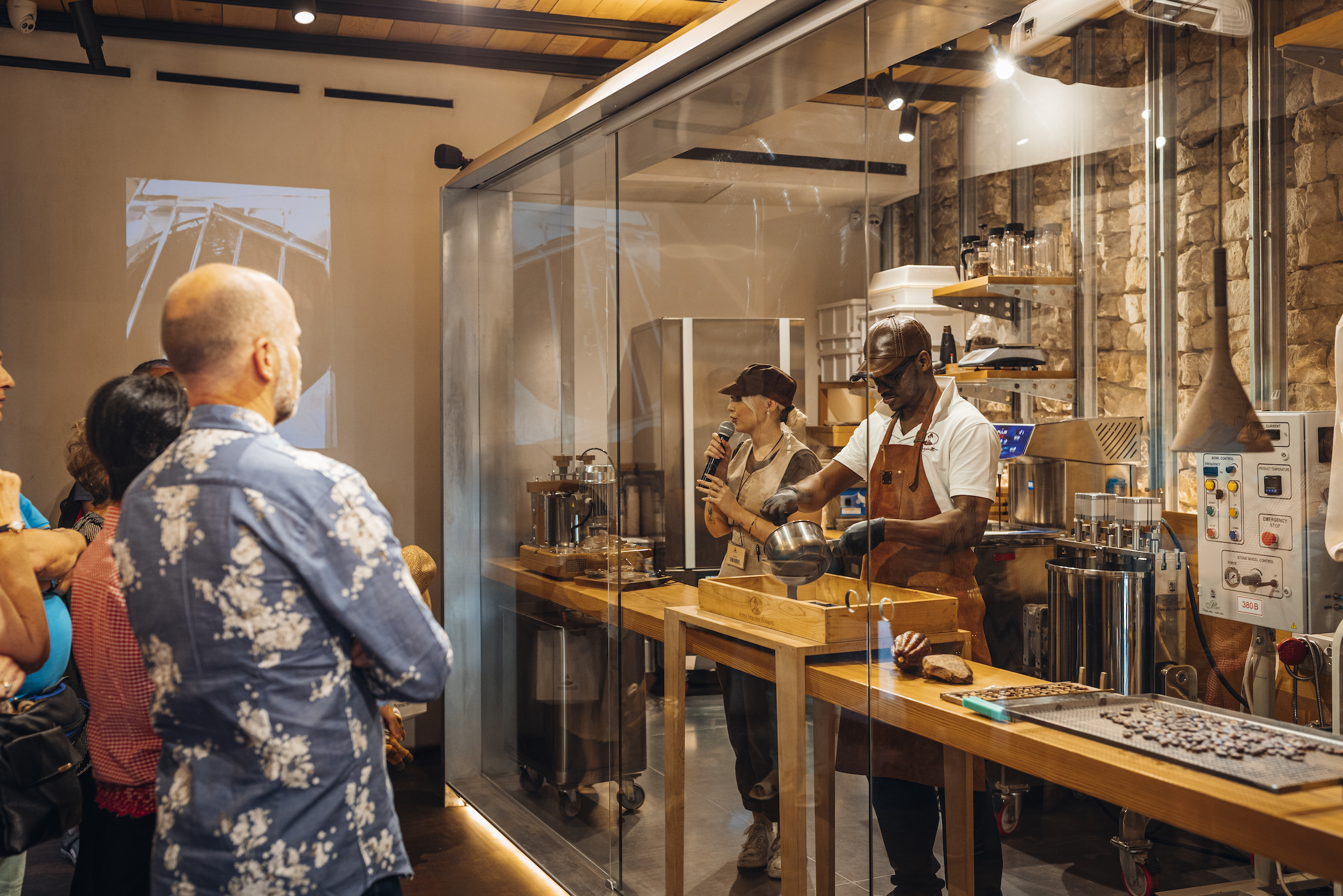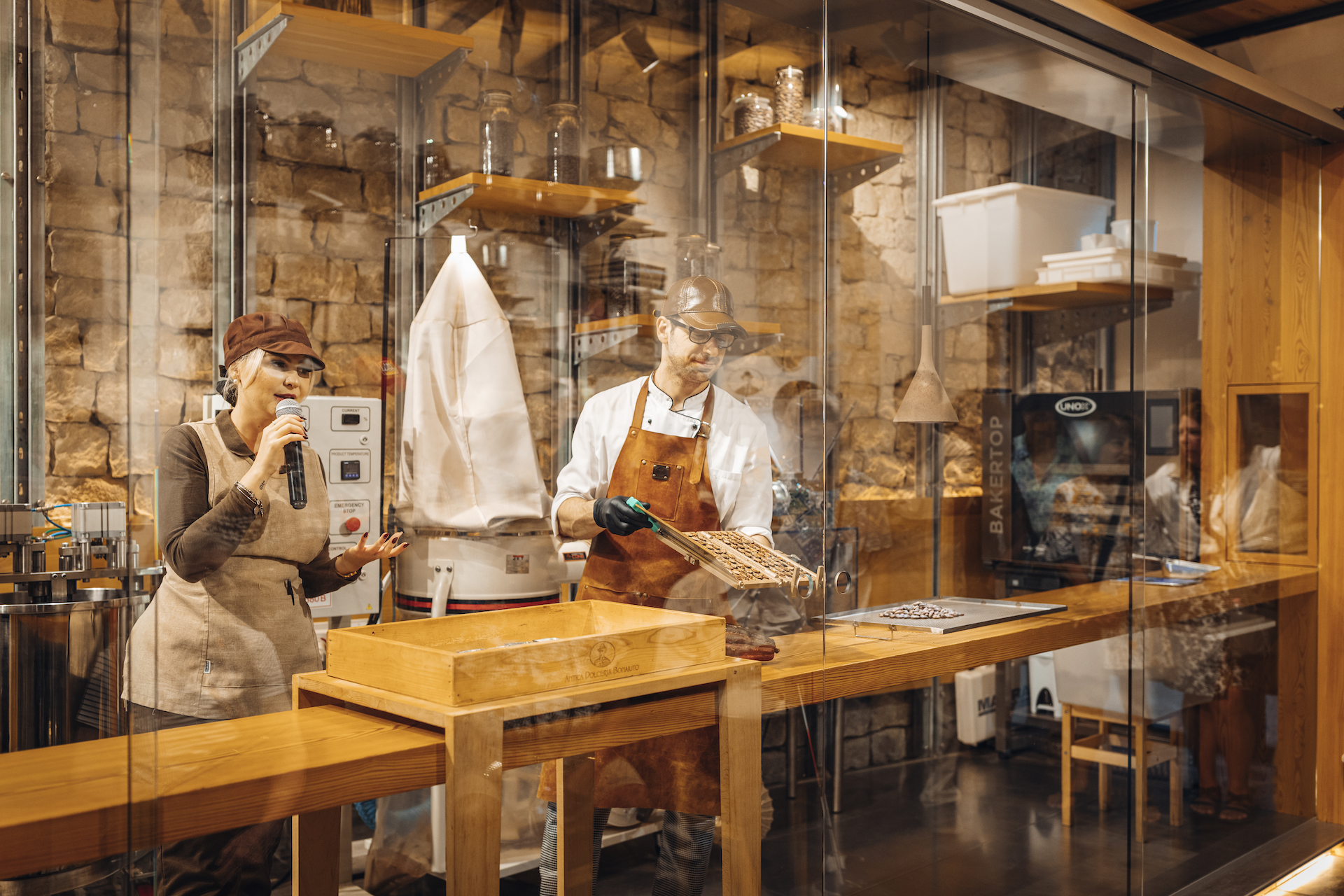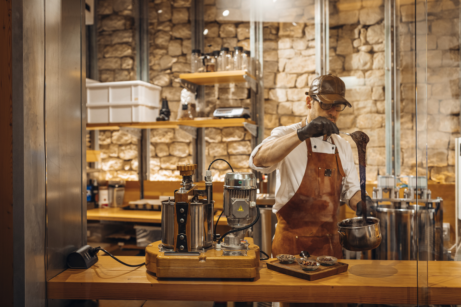 Aquí podrá ser testigo de la magia de la transformación del cacao, observando cada paso del proceso «del grano a la barra». Desde el envolvente aroma de las habas recién tostadas hasta el momento en que el chocolate toma forma, disfrutará de una experiencia sensorial única de historia, artesanía y pura pasión.
