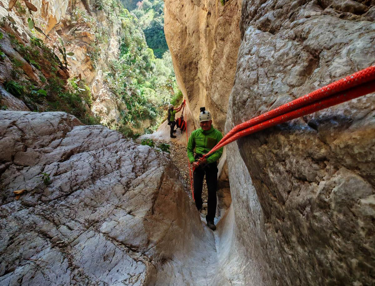 Acompañado por guías experimentados y equipado con material de alpinismo, explorará un cañón hoy desecado, verdadero monumento natural forjado por la fuerza del agua a lo largo de los siglos. El itinerario incluye descensos por cuerda de diferentes alturas, accesibles incluso a escaladores inexpertos, que le permitirán sumergirse plenamente en la majestuosidad de la naturaleza.