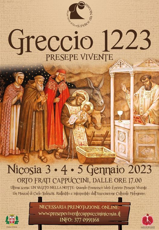 Presepe Vivente Greccio 1223, organizzato, da oltre trent’anni, dai frati Minori Cappuccini di Nicosia che rappresentano il presepe vivente con lo scopo di rivivere la nascita di Gesù nel suggestivo contesto spirituale e paesaggistico di San Felice da Nicosia.