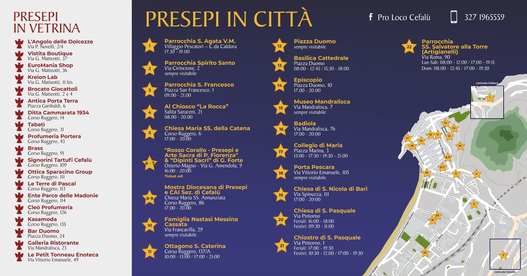 La Via dei Presepi è un suggestivo percorso che vi farà ammirare la bellezza dell’arte presepiale in una Cefalù da scoprire. Nel borgo sono esposti presepi di ogni tipo e provenienza, diffusi in tanti luoghi, creando un itinerario che vi farà conoscere tanti luoghi diversi e tanti modi di creare l’atmosfera natalizia.
