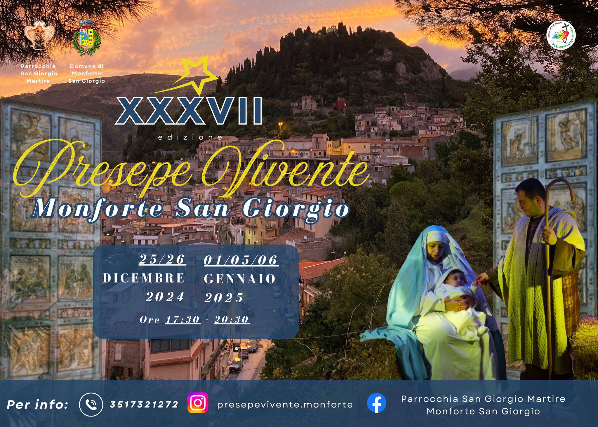 Nei giorni 25 e 26 dicembre 2024 e 1, 5 e 6 gennaio 2025, dalle 17:30 alle 20:30, il Presepe Vivente di Monforte San Giorgio offrirà ai visitatori un’esperienza di profonda riflessione e spiritualità, incentrata sul tema del Giubileo dell’Anno Santo: “Pellegrini di speranza”.