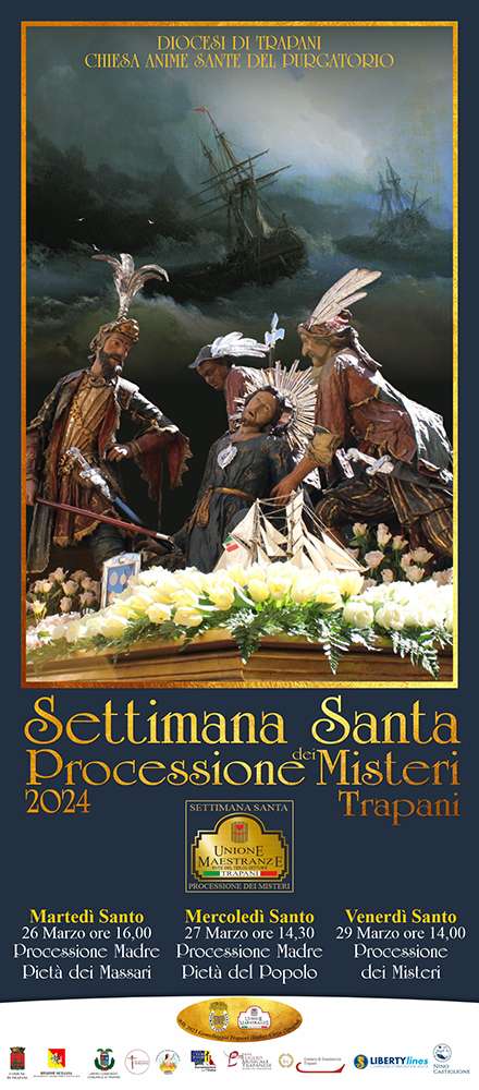 Ogni anno, il Venerdì Santo a Trapani, si vive una grande emozione, ovvero il ripetersi di una tradizione secolare che rappresenta la passione e la morte di Cristo: La Processione dei Misteri. Si tratta di 18 gruppi scultorei più due simulacri, realizzati in legno, tela e colla tra il XVII il XVIII secolo dalle botteghe artigiane trapanesi. La processione ha origini spagnole e, oggi, l’Unione Maestranze è la vera macchina organizzatrice di questo splendido rito secolare che non ha mai perso il proprio fascino nonostante i patologici cambiamenti dettati dal passare del tempo.