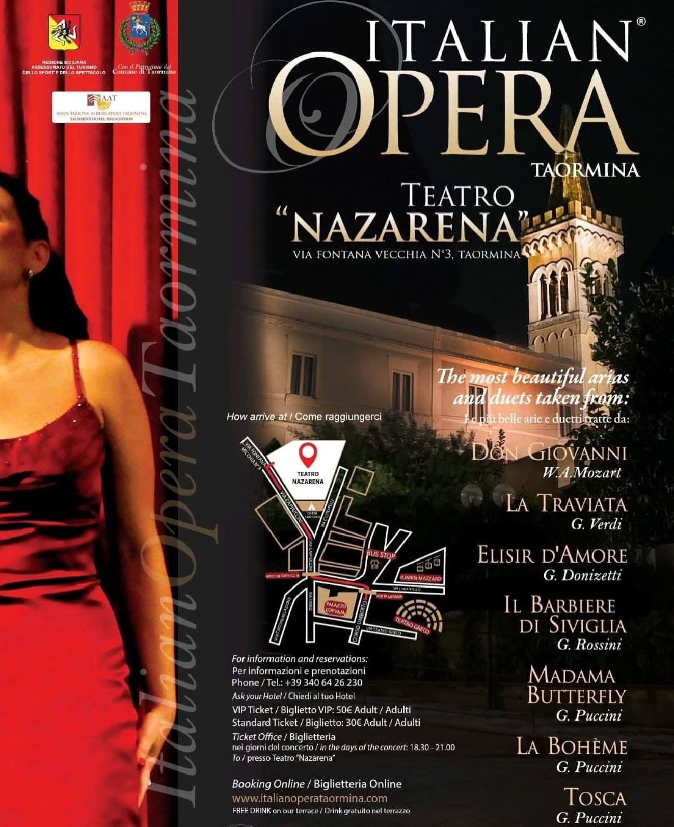 Pour des informations actualisées sur l’horaire des représentations, les réservations et le prix des billets, visitez le site officiel : italianoperataormina.com