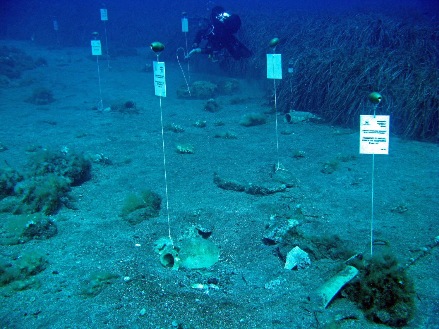 Le voyage commence à la fois par la terre, depuis la jetée de Cala Tramontana, et par la mer, en s’amarrant à la bouée prévue à cet effet. En chemin, vous vous immergerez dans un monde sous-marin fascinant : des fragments d’amphores puniques, des ancres lithiques, des vestiges de différentes époques, etc. vous attendent.