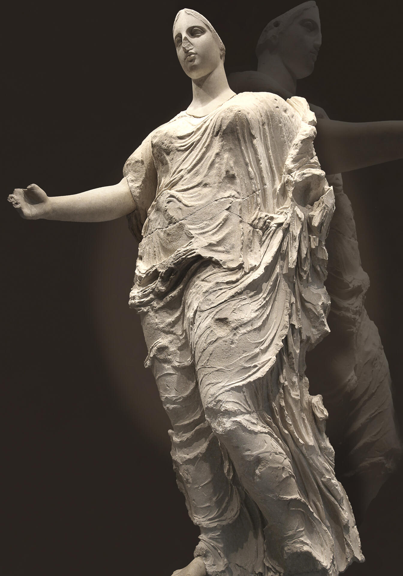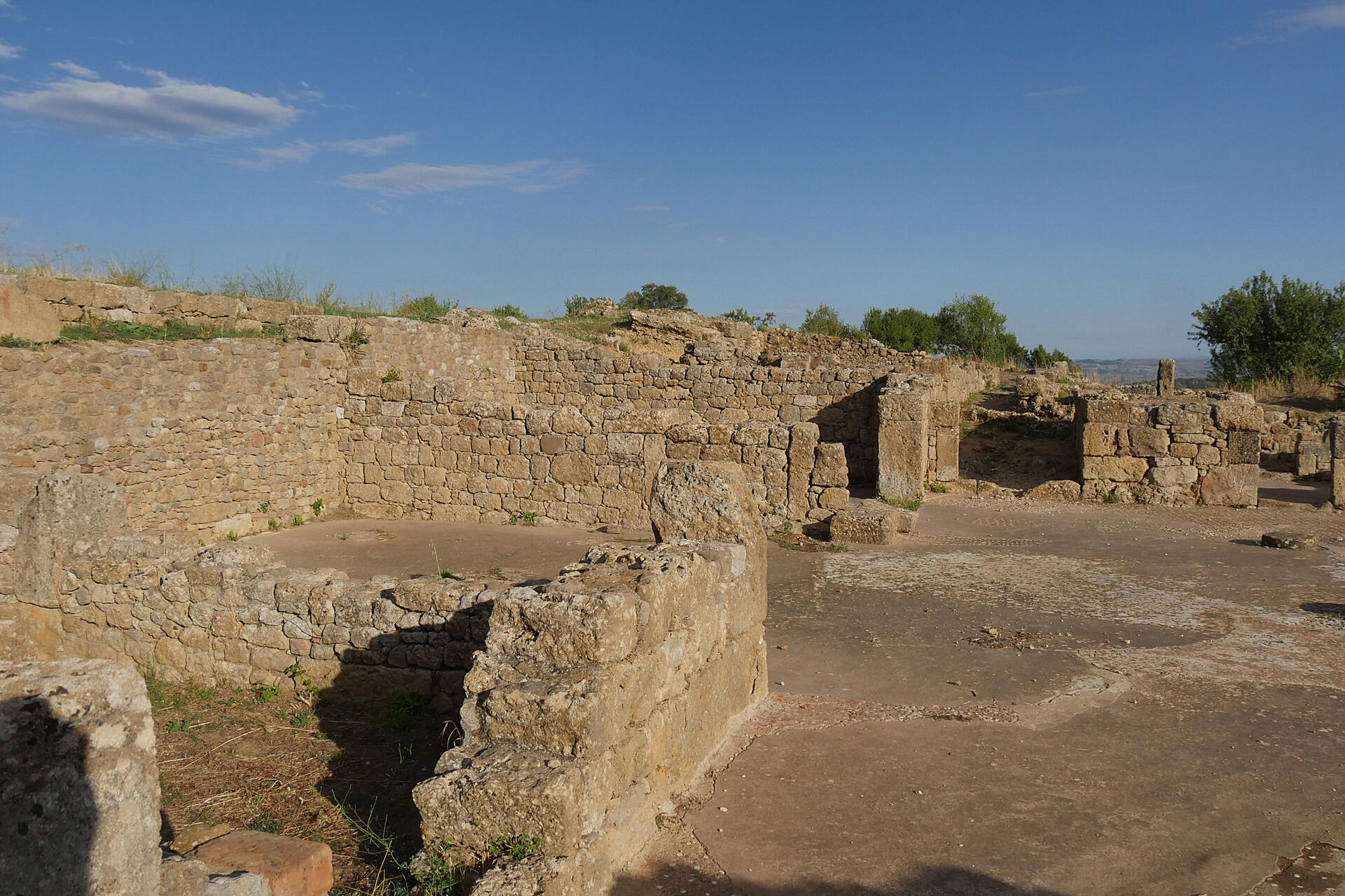 Passiamo poi al Parco archeologico di Morgantina, ad Aidone (EN). Morgantina è un caso raro in Sicilia di città abbandonata (la vita finisce nel I sec. d. C.) che non ha subito tutte quelle trasformazioni dovute alle sovrapposizioni storiche. La città è ancora in corso di scavo, ma è visitabile l’area pubblica con monumenti di età ellenistica, in particolare lo splendido teatro, una serie di case più o meno ricche e importanti edifici termali, ben precedenti a quelli noti nel mondo romano. Per una conoscenza più completa della storia di questa misteriosa località abbandonata, occorre fare tappa al Museo archeologico di Aidone: qui, al percorso informativo sul sito, negli anni si sono aggiunti diversi capolavori rientrati da importanti musei internazionali: come la coppia di Acroliti di epoca arcaica (teste, mani, piedi in marmo di un gruppo di Demetra e Kre); e l’imponente statua di Dea della fine del V sec. a. C.; il tesoro di argenti ellenistici; la testa di Ade in terracotta policroma del IV sec. a.C.