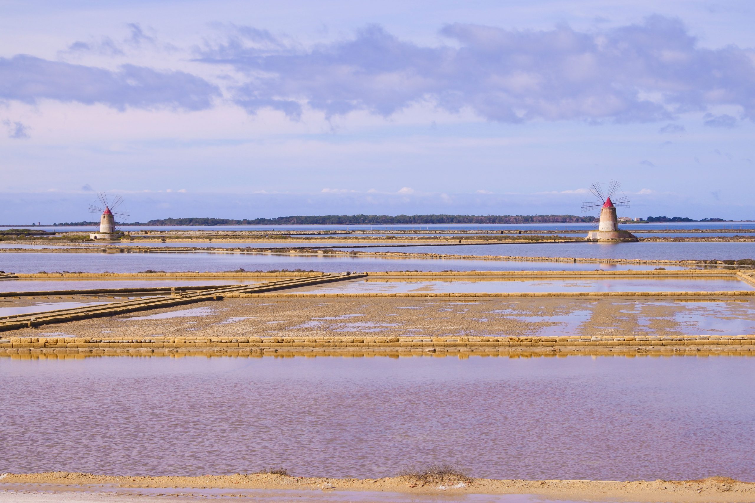 Andiamo ora a Marsala, poco più a sud di Trapani. Tutta la linea costiera è costellata di saline, ma non c’è una ciclabile che le collega. Se volete affittare una bicicletta a Marsala, occorre arrivare prima in città. Anche qui una pista ciclabile e pedonale, lunga 7,6 km, vi porterà alla scoperta di uno dei luoghi più suggestivi e famosi di tutta la Sicilia: la Riserva dello Stagnone. Partendo dalla città di Marsala, la pista comincia dalla fine del canale delle Saline Genna e termina in contrada Birgi, più a nord. La Riserva orientata Isole dello Stagnone protegge quella che è la più grande laguna di Sicilia, con il suo peculiarissimo habitat. Lungo il percorso potrete ammirare da subito le isole dello Stagnone (Mozia, Isola Grande, Schola e Santa Maria), ma anche la particolare avifauna (anche qui: fenicotteri, avocette, garzette ecc) e la flora. Giganteggiano sullo sfondo le vicinissime isole Egadi e poi… sale, sale dappertutto! Passeggiate tra le vasche e fatevi rapire dai riflessi dell’acqua che qui prende una particolare colorazione rosa. Guardare per credere! A circa metà percorso vi troverete davanti l’imbarcadero storico per l’isola fenicia di Mothia, importantissimo sito archeologico che domina la Laguna. Potrete fare un giro in barca sulla laguna e, se amate anche gli sporti acquatici, perché no, anche in kayak . Dall’imbarcadero in poi cominciano le bellissime Saline Ettore-Infersa in cui potrete ammirare i giganteschi mulini a vento ristrutturati. Si giunge poi alla zona di Birgi, da cui parte la vecchia strada sommersa per l’isola di Mothia: da qui i carretti trasportavano l’uva coltivata sull’isola, bestiame e altro (il percorso è visibile solo con la bassa marea). Anche in questa zona non si vive di solo sale: celebre è il re dei vini liquorosi, il Marsala. Non fatevi sfuggire l’occasione di assaggiarlo, soprattutto dopo tanta fatica!