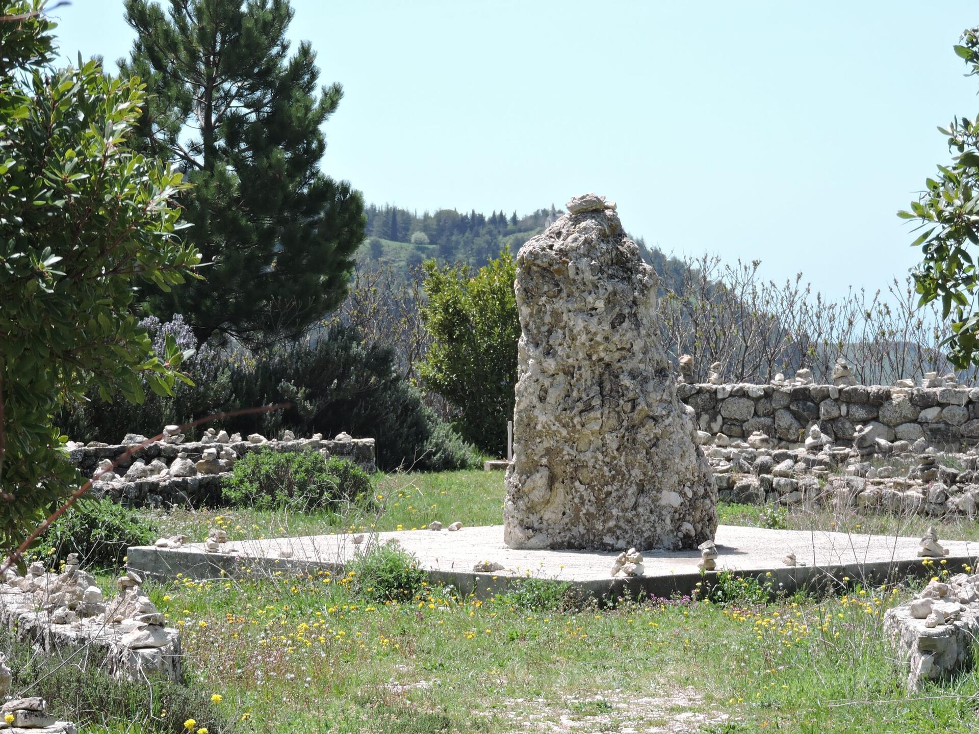 Il suo significato rimanda, per stessa ammissione del suo creatore, allo scontro siderale che tra due miliardi e mezzo di anni la nostra galassia avrà con la Costellazione di Andromeda. Qui, dove spirito e natura trovano la loro perfetta simbiosi, una cavea con 108 sedili in pietra, che